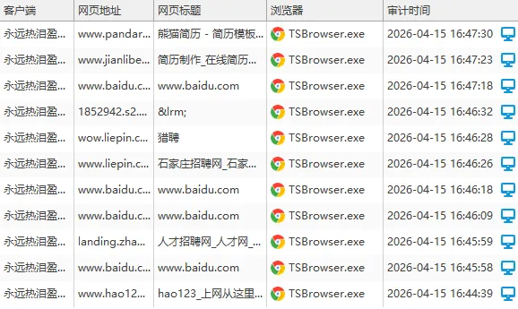 所有的上网行为都会一一记录,看了什么网站,网页标题是什么,有没有打算离职,频繁上招聘网。