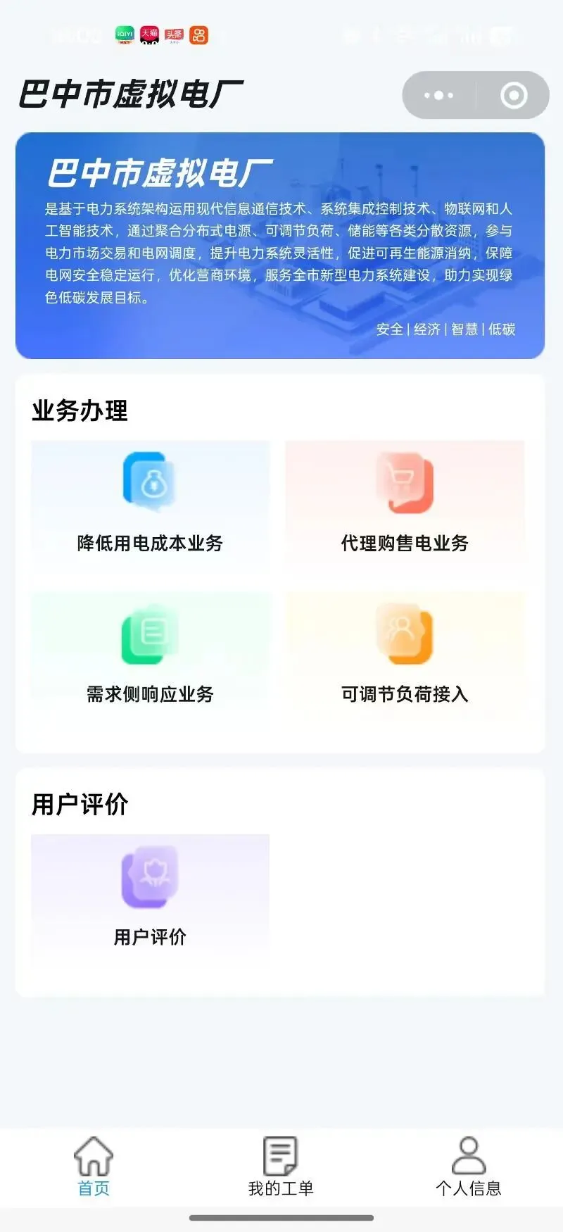微信小程序“巴中市虚拟电厂”页面