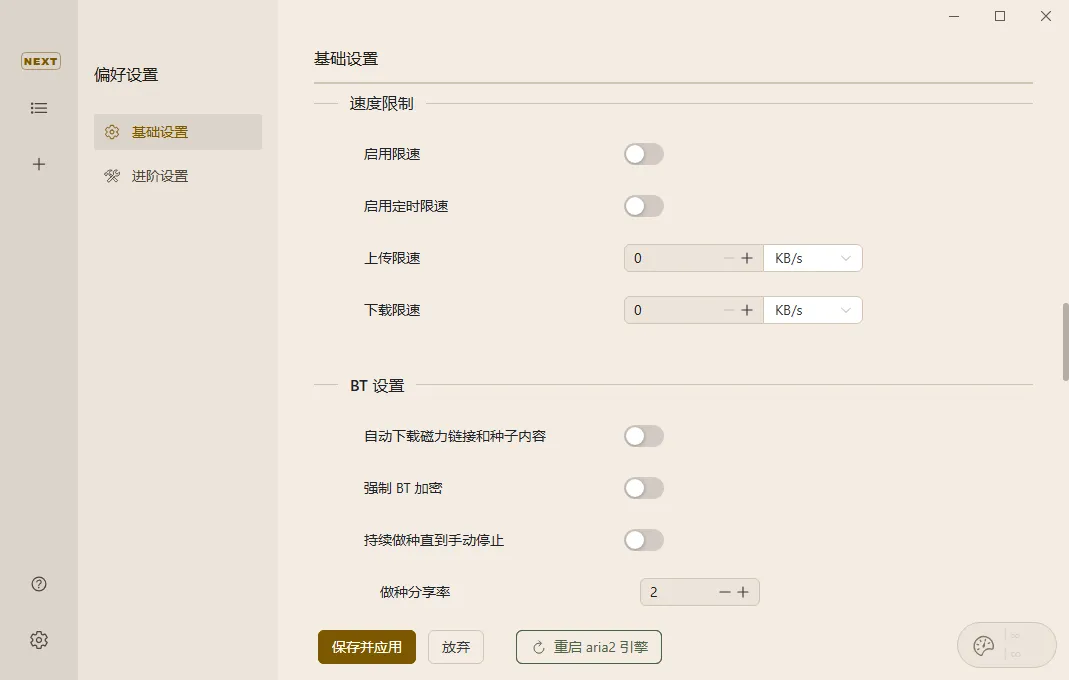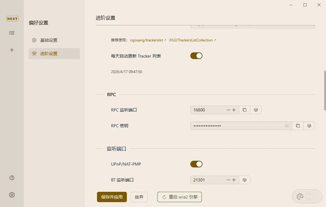 软件的使用方面需要注意的就是,虽然支持磁力下载,但是想要有速度还是有很多限定条件的,比如要有公网IP以及一个优秀的tracker列表。不过该软件目前已经内置了不少高效的tracker了,而且也不用你自己手动更新,可以自动更新,具体的可以看上面的设置项目。