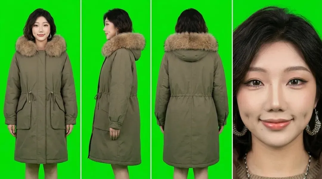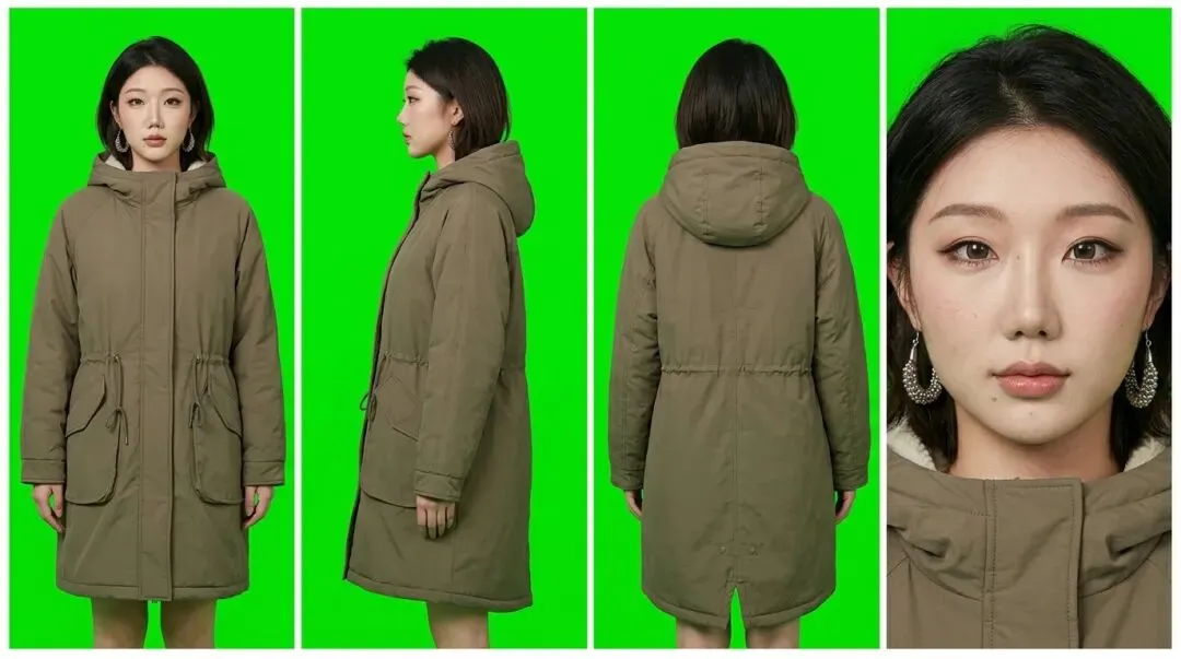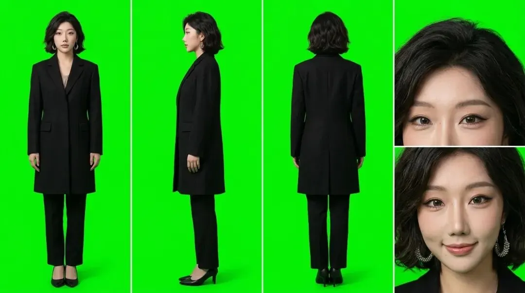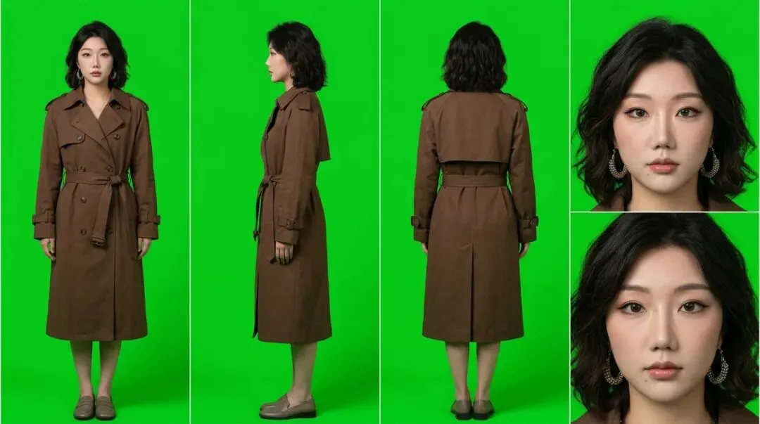 风格:严格遵循专业产品目录或模特资料卡的视觉规范,追求真人、超写实、电影级且完全逼真,同时完美保留其原始身份、面部结构、服装、整体外貌特征。构图工整、背景干净、光线均匀的影棚质感。