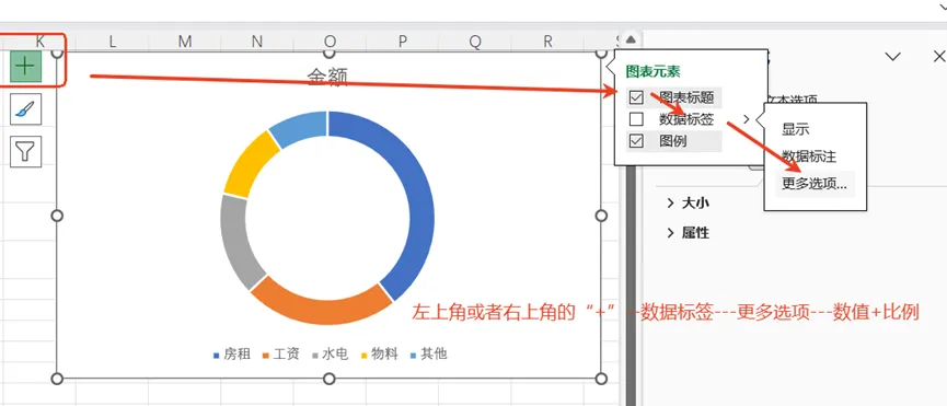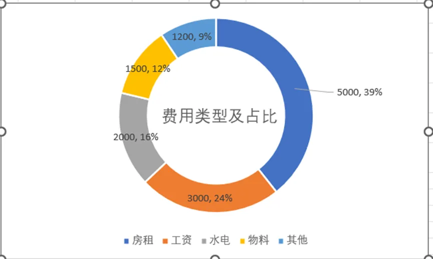 环形图:展示占比结构,比饼图更美观、高级,中间空心可放文字。