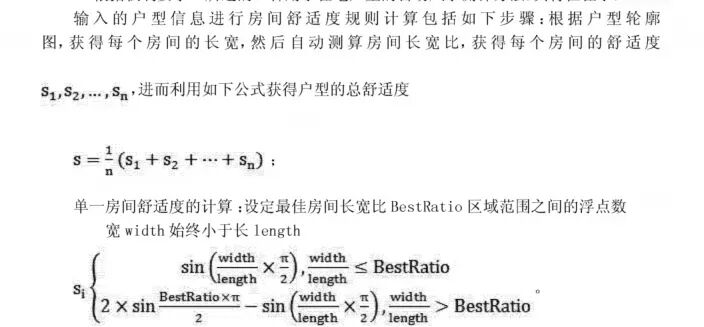 房间舒适度用正弦函数计算:每个房间长宽比 → 舒适度 Si计算,用正弦函数计算长宽比(黄金分割最香,方正也不算最优),公式优雅得像数学课本: