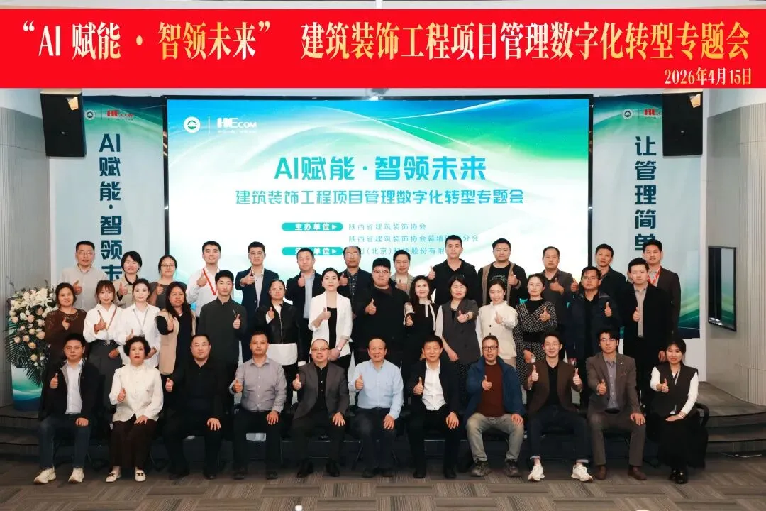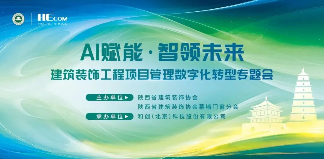 2026年4月15日下午,由陕西省建筑装饰协会、幕墙门窗分会主办、和创(北京)科技股份有限公司承办的主题为“AI 赋能・智领未来” 建筑装饰工程项目管理数字化转型专题会在西安顺利召开。陕西省建筑装饰协会幕墙门窗分会会长吴剑、副会长东智勇、张瑞兵、李彦荣,设计分会副会长杨彦锋、地坪分会执行会长陈晓东及来自建筑装饰协会会员企业负责人、项目经理、财务负责人等90余人参加会议,陕西省建筑装饰协会党支部书记兼会长郑建钢、北京东方泰洋幕墙股份有限公司总经理方繁盛受邀出席会议。
