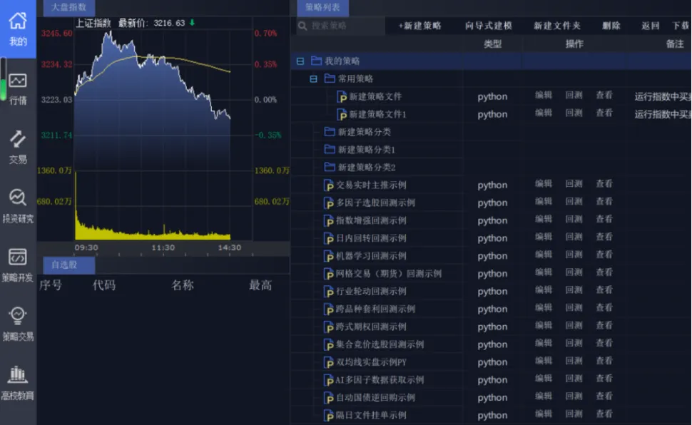 如果你使用会策略,有自己的策略或者会编写策略可以使用下面的量化交易软件,它是在QMT的基础上的升级,满足平时使用PYTHON语言的策略交易平台,支持股票、期货、期权、债券等全品种交易,帮助你快速实现个性化交易想法,基于内存柜台,比普通柜台速度开40倍。