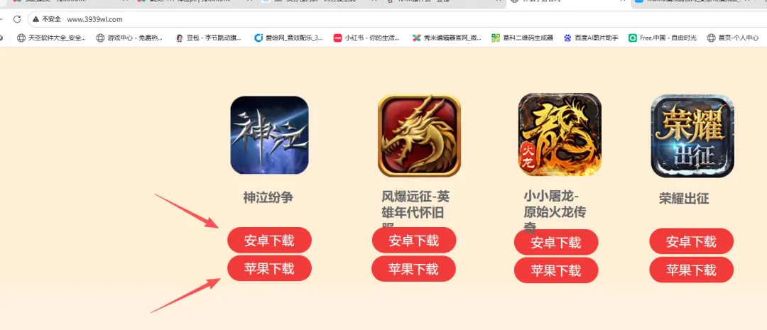 输入下载网址,根据自己的系统进行游戏下载(www.3939wl.com)