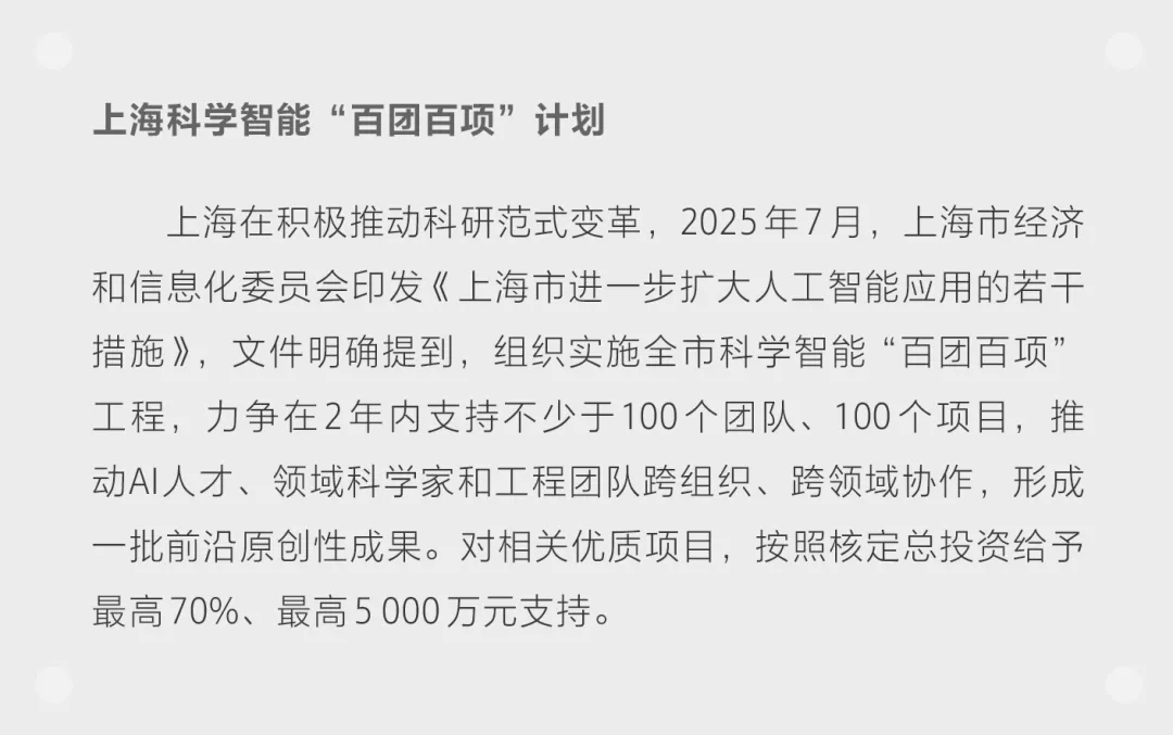 在基础设施层面,上海正在积极布局。上海人工智能实验室等机构正在尝试把科学大模型、专业数据平台与具体学科任务结合起来,例如他们推出的“书生”科学多模态大模型Intern-S1,在化学、材料、地球科学等多学科基准上超越顶尖闭源模型;科学发现平台Intern-Discovery整合了50多家科研机构的PB级专业数据集。在具体科学方向上,从量子计算到超导材料、从癌症靶点发现到AI辅助育种,都已产出阶段性成果。多智能体虚拟疾病学家“元生”系统能够自主发现并验证癌症治疗新靶点,基因科学家系统“丰登”在主粮作物中自主发现了数十个全新基因功能并获实验证实……
