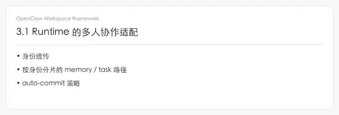 更具体一点说,很多 runtime 很会处理“眼前这段会话”,却不天然擅长处理“这段会话背后的人和关系”。它知道现在在聊什么,却不一定知道这是谁发起的任务,谁有权批准,谁应该收到结果,谁的偏好应该被继续沿用。个人使用时,这种缺口不一定马上暴露;一到组织环境里,它很快就会变成结构性问题。