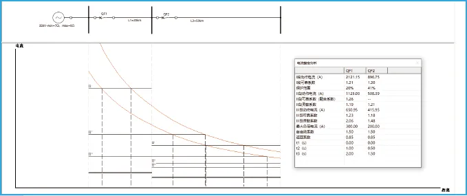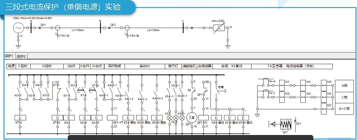 用户可使用该实时调整并观察三段式电流保护之间的配合情况及一次侧的故障电流值,也可通过该工具了解三段式电流保护的四个特性。