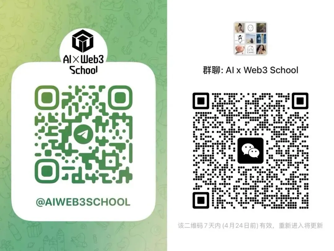 若 WX 群满 200 人,请添加运营人员微信(nanakodesuu 或 swenchan_)并备注【 AI x Web3 School 中文社群】