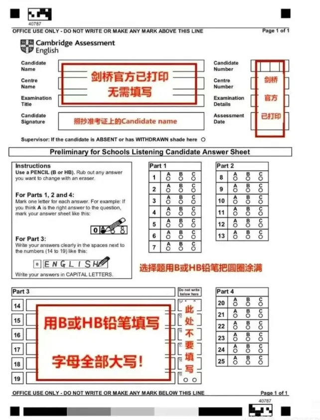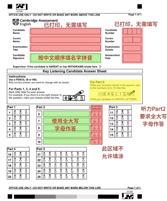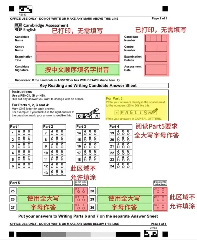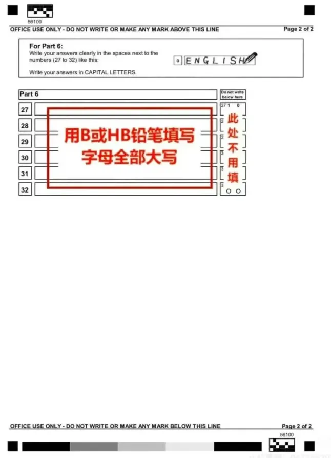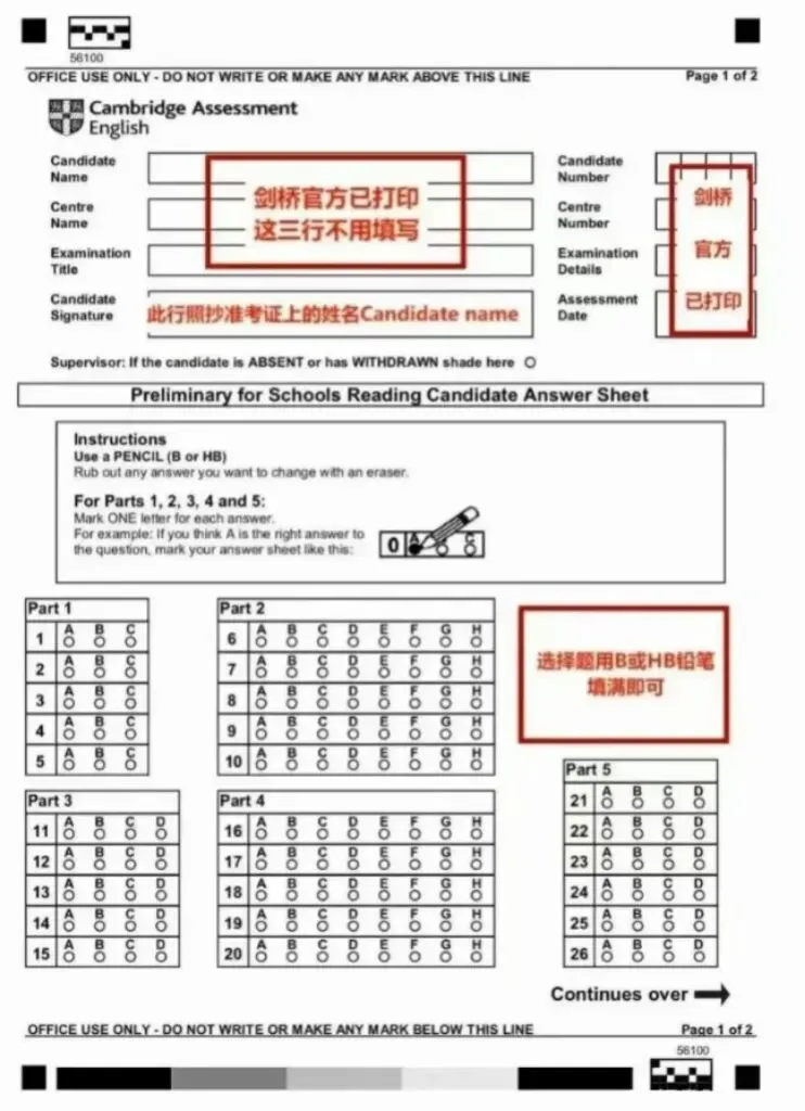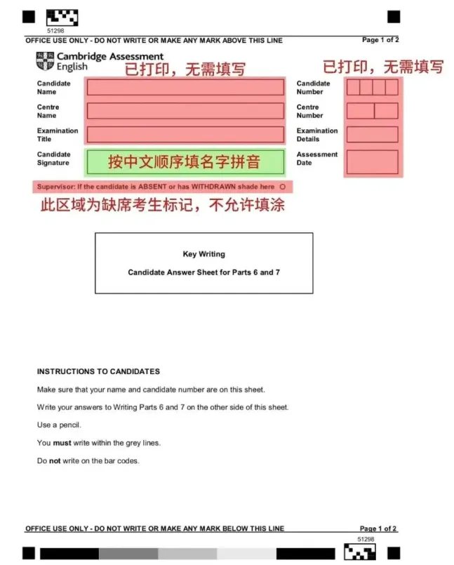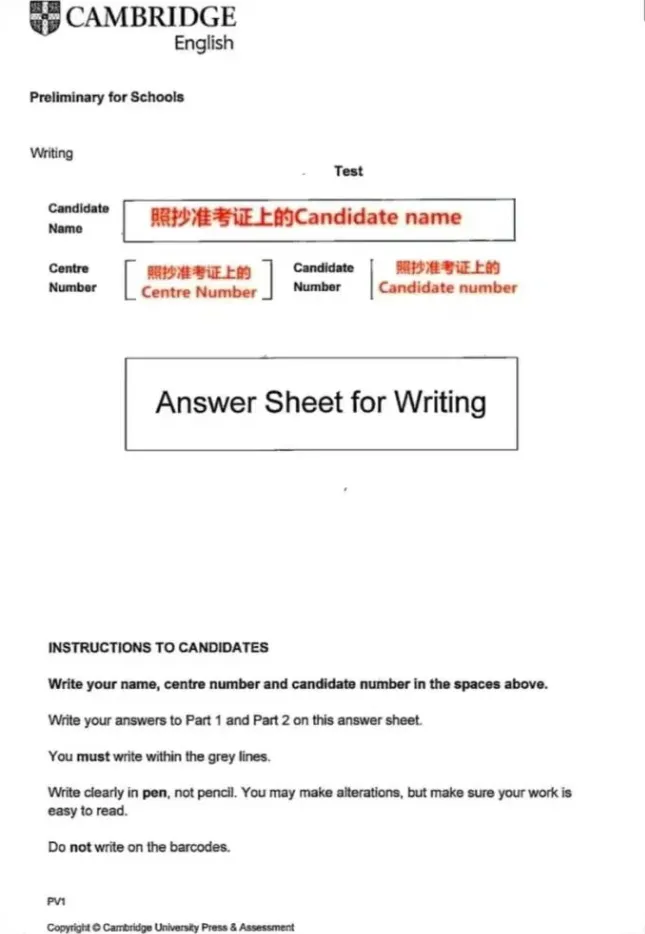 PET/FCE 仅写作部分使用黑色/深蓝色水笔,其他部分均使用铅笔答题