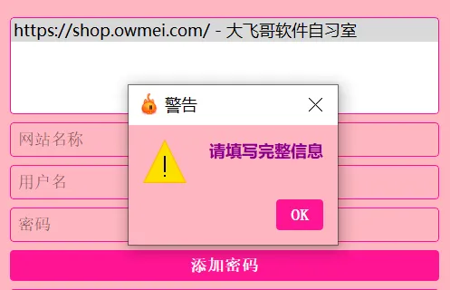 大家好,我是大飞哥。日常使用互联网的过程中,我们总会遇到多平台账号密码记混、明文记录易泄露、翻找密码耗时耗力的困扰,要么反复重置密码浪费大量时间,要么用记事本记录面临严重的隐私泄露风险,而市面上的专业工具又操作繁琐、使用门槛极高 —— 这款密码管理器,就是专为个人及职场用户打造的轻量化、高安全性账号密码管理工具,核心使命是解决多账号管理混乱、存储不安全、查找繁琐的核心痛点,实现零门槛上手、全场景适配的一站式账号信息安全管理,彻底告别密码遗忘、丢失的困扰,全方位守护用户的数字资产安全。