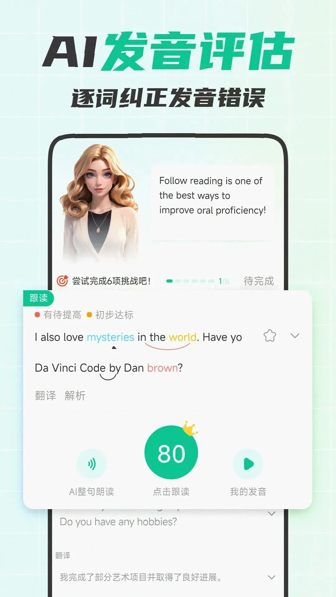 作为专为零基础打造的免费的英语学习软件,可栗口语真正做到了"从0到1"的全方位支持:通勤路上练10分钟点餐对话,晚上在家跟着AI外教模拟面试场景,不用约时间、不怕被嘲笑,每一次练习都有精准反馈,坚持1个月就能轻松应对日常简单交流。