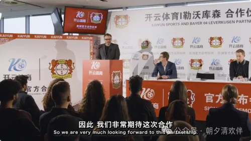 在发布会上,勒沃库森俱乐部首席营销官马库斯·布雷格勒(Markus Breglec)表示:“非常荣幸地宣布与开云体育建立合作伙伴关系,开云体育的加入为勒沃库森俱乐部带来更多商业机遇,也将促进俱乐部与球迷之间的互动体验,对本次合作我们充满信心,也坚信会给俱乐部带来更好的的发展”