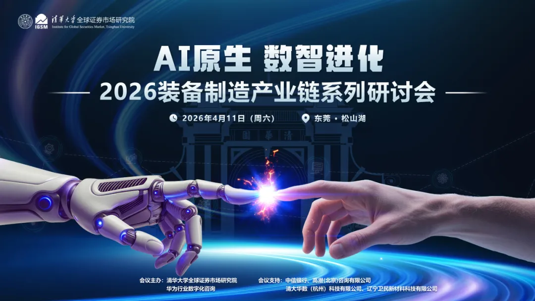 2026年4月11日,由清华大学全球证券市场研究院与华为行业数字化咨询联合主办,中信银行、高潜(北京)咨询有限公司、清大华数(杭州)科技有限公司、辽宁卫民新材料科技有限公司支持的“AI原生 数智进化·2026年装备制造产业链系列研讨会(第一期)”在东莞松山湖成功举办。