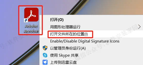 12.在桌面上选中“Adobe Acrobat”鼠标右键点击打开文件所在位置