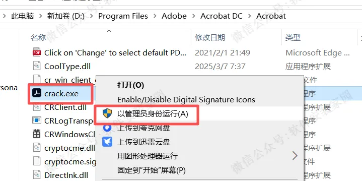 14、选中“crack补丁”鼠标右键点击管理员身份运行