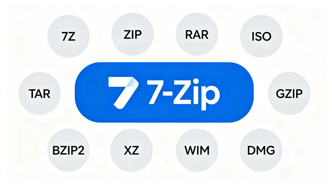 ✅ 压缩:仅5 种(7z、ZIP、TAR、GZ、BZ2)