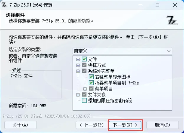 压缩速度偏慢,属于用时间换空间,极限压缩耗时约 WinRAR/Bandizip 的2~4倍,解压:较快(30~100MB/s@4GHz);综合建议:不适合频繁打包 / 大文件急压。