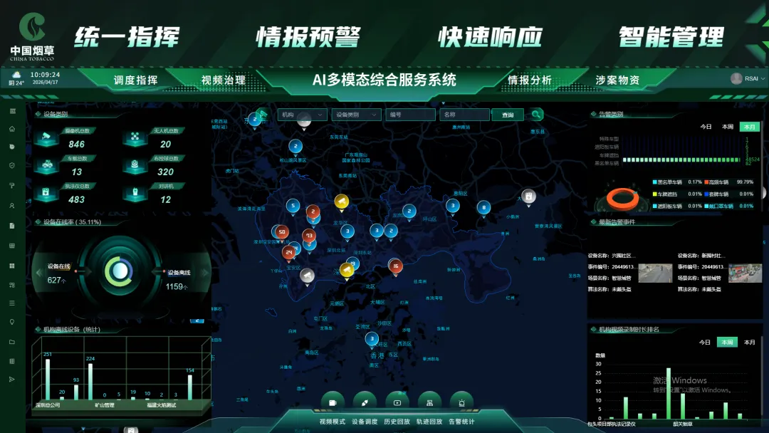 多终端协同调度场景下,执法记录仪、对讲机、无人机实现音视频互联互通,指令传递更顺畅。执法仪搭载的语音提醒功能,可实时规范执法行为,助力执法过程更加标准透明。平台还通过设备在线率、算法告警统计、工单处置进度等数据看板,直观展示监管全貌,为科学决策提供有力支撑。