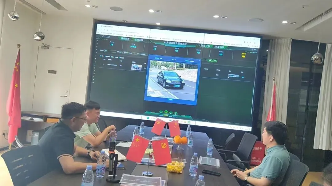 在系统演示环节,工作人员通过管控大屏展示了全景视图、视频监控、告警统计、案件管理等核心功能。前端设备对重点区域实时监测,系统自动识别遮挡车牌等异常情况并及时告警。