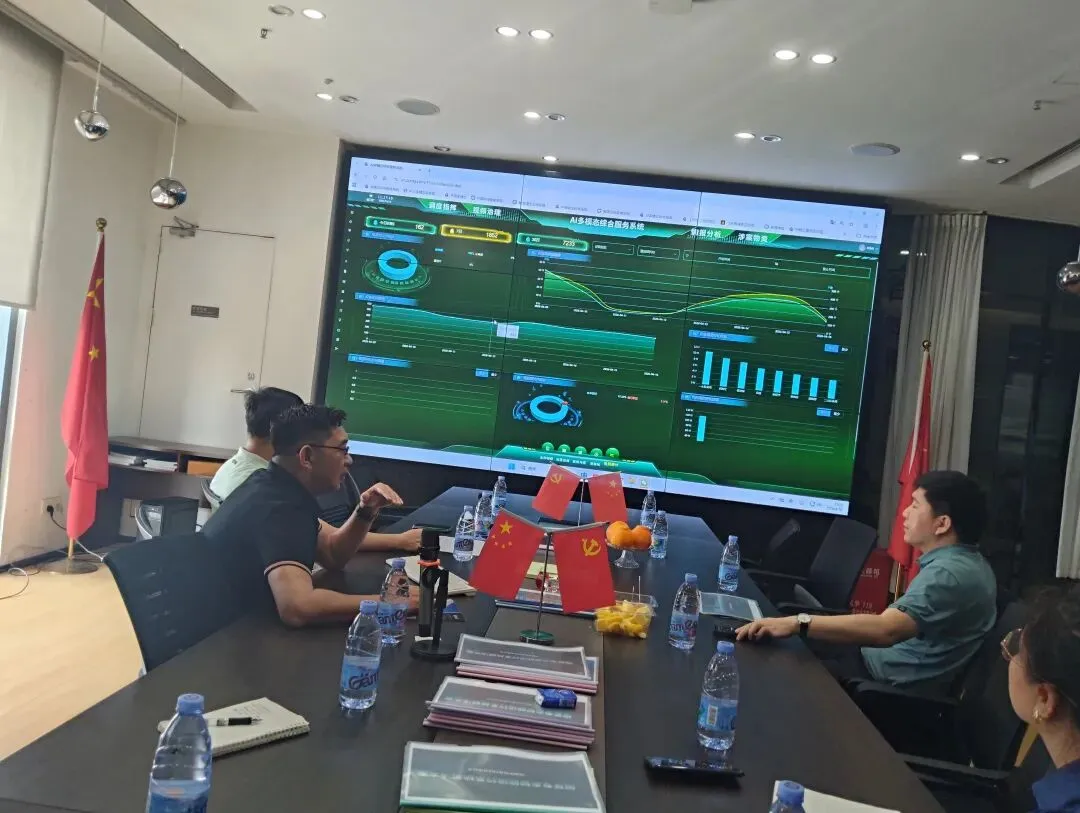 在公司负责人陪同下,考察组现场观摩了烟草 AI 多模态综合服务系统全流程演示,从行业痛点解决方案、系统架构原理,到核心功能模块实操应用,全面了解科技赋能烟草监管的落地路径。