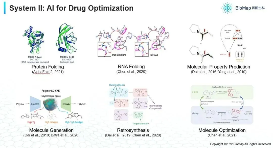 二、分子生成与优化。 基于给定靶点,生成具有潜在活性的候选药物分子结构,并对其在成药性(ADMET属性:吸收、分布、代谢、排泄、毒性)方面进行预测评估。这一步如果做得好,能显著减少进入动物实验的"垃圾候选分子"数量。