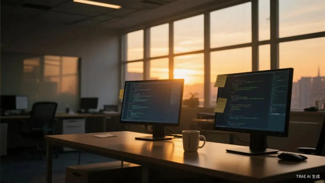 程序员的工位,黄昏