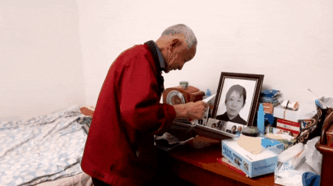 看到那张结婚照,他凝视良久,随后小心翼翼地将照片摆在了床头:“我们老太婆看到,她肯定会很高兴……”