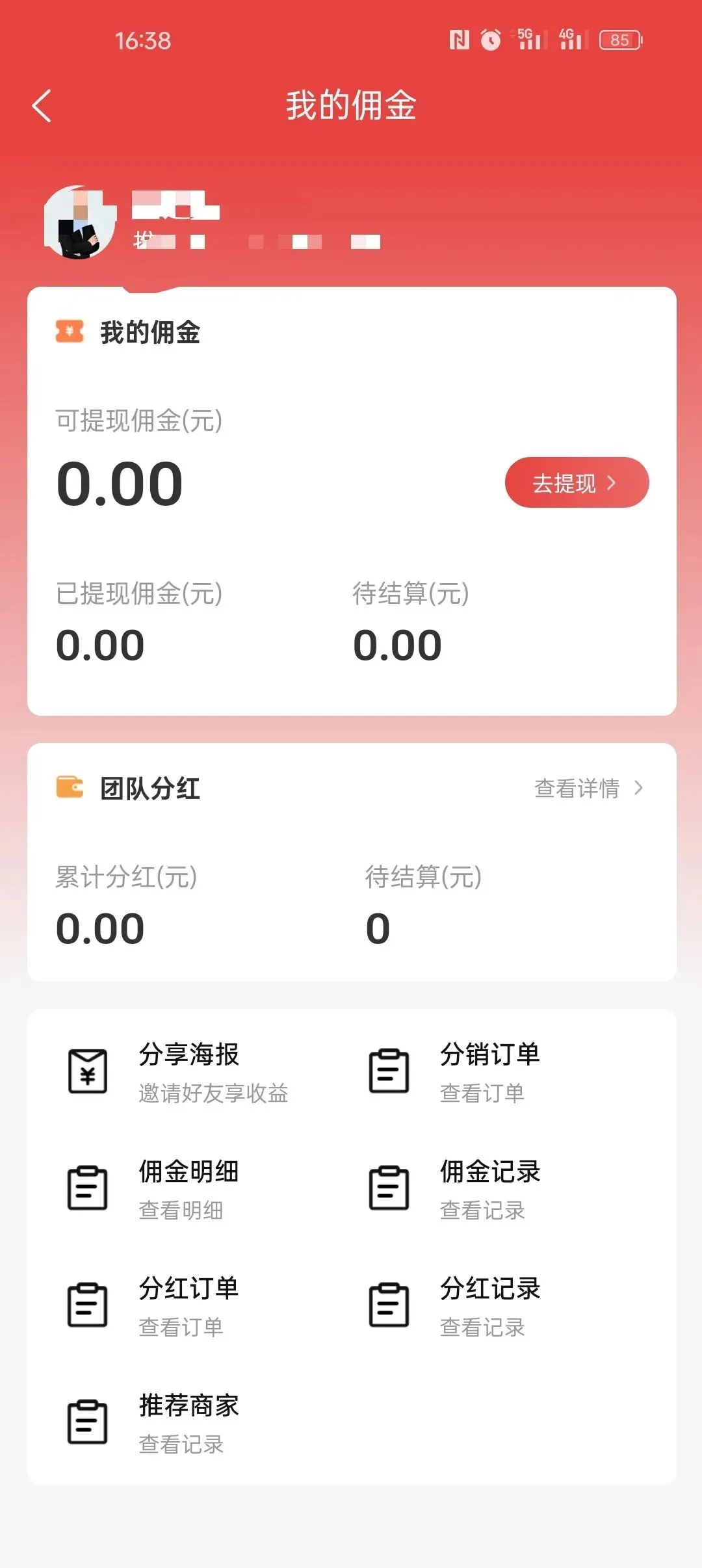 升级为VIP会员及以上级别方可以查看佣金,分销佣金,代理分红,合伙人分红,商家分红均在我的佣金体现。