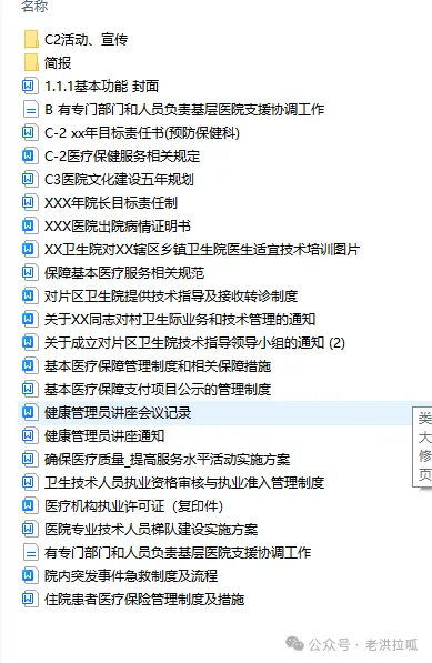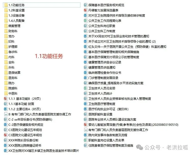乡镇卫生院100条,社区卫生服务中心90条,全部是模板,按照实际需求简单修改即可。