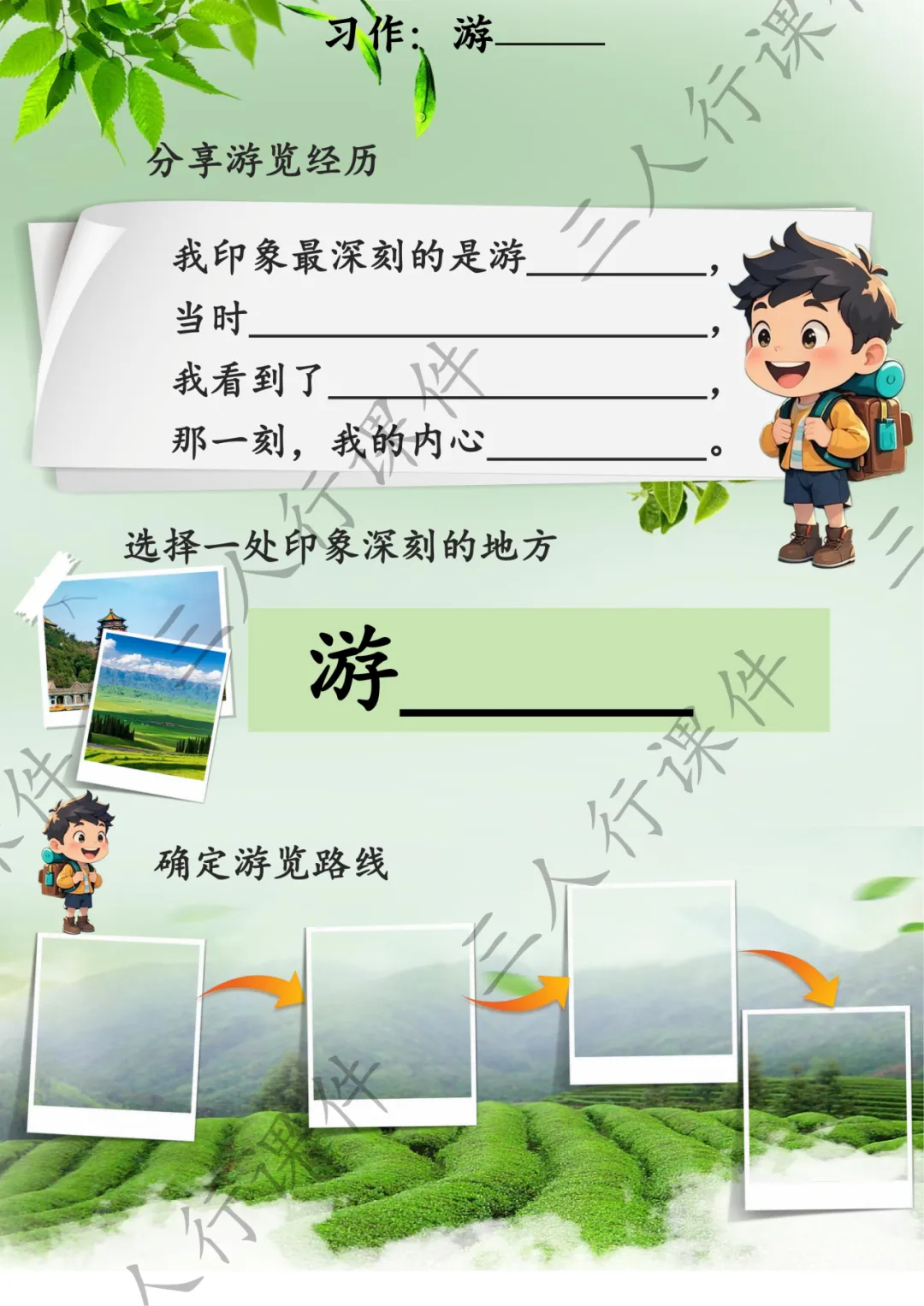 引导大家选定一个印象深刻的游览地点,填在题目横线上。