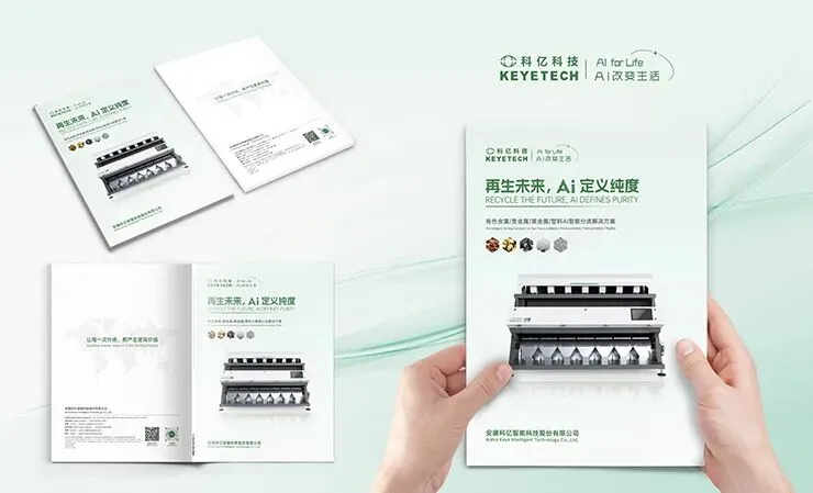 本次画册服务于安徽科亿智能科技股份有限公司—— 国家级专精特新小巨人企业,专注 AI 智能分选技术,覆盖有色金属、贵金属、塑料再生、固废回收等核心领域。画册核心目标:以专业、极简、科技感的视觉语言,清晰传递 AI 技术实力,凸显品牌高端、智能、可靠形象,高效支撑市场推广、展会宣传、客户洽谈。