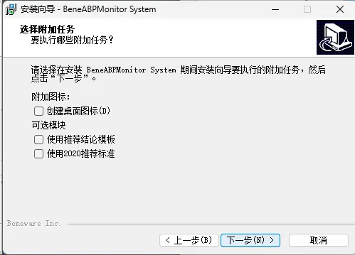 弹出【选择安装语言】后,默认语言是中文,不需要修改的话,直接点击【确定】按钮弹出这个窗口后,要检查动态血压软件有没有运行,需要关闭血压软件之后,再点击【下一步】软件默认会使用上次的安装位置,就是我们前面查看的安装位置,一般不需要修改,直接点击【下一步】按钮附加选项,也会使用之前安装时的设置,一般不需要修改,直接点击【下一步】按钮需要确认的安装选项操作确认完毕之后,点击【安装】按钮
