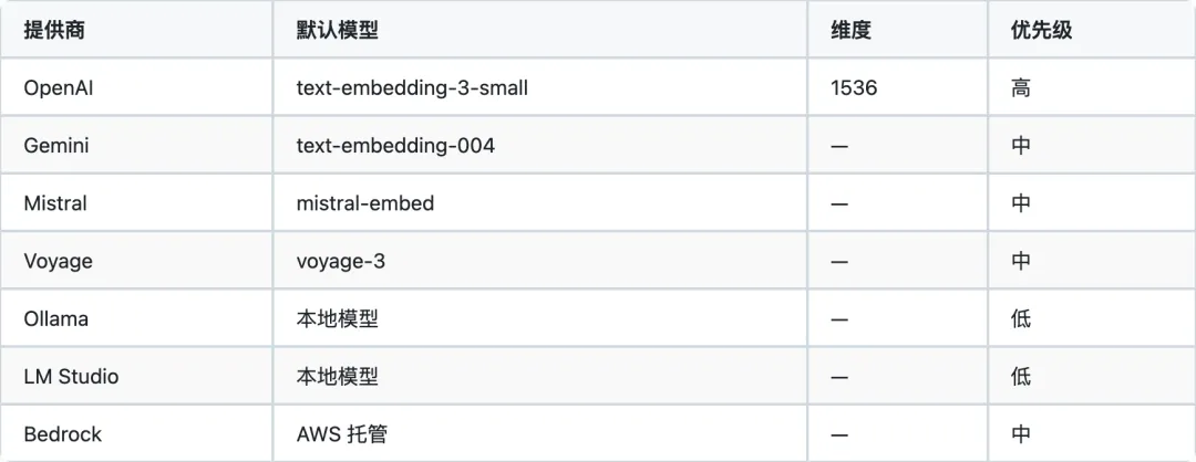 5.1 支持的 Embedding 提供商
