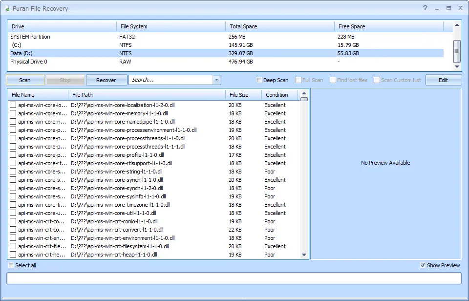 提供快速扫描,可在短时间内列出已删除文件,支持FAT12/16/32和NTFS