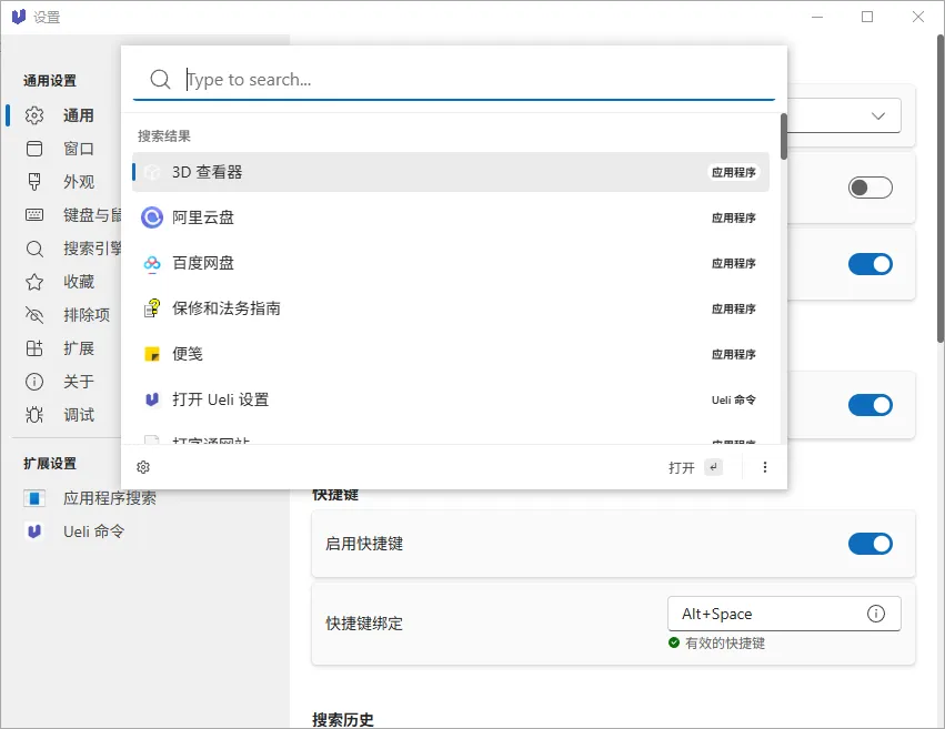支持使用快捷键 Alt + Space 呼出或隐藏主界面
