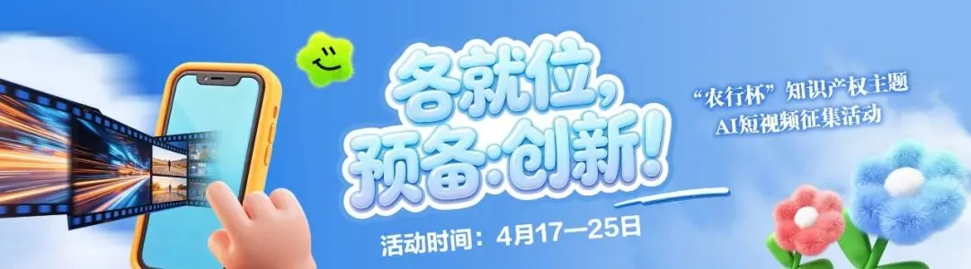 创新是时代的底色,知识产权是创新的保护伞。为深入推进知识产权宣传教育,提升全民知识产权保护意识,营造尊重创新、抵制侵权的良好社会风尚,“农行杯”知识产权主题AI短视频征集活动正式启动!