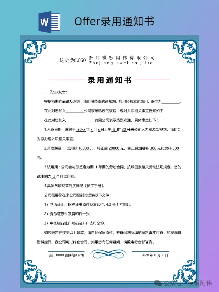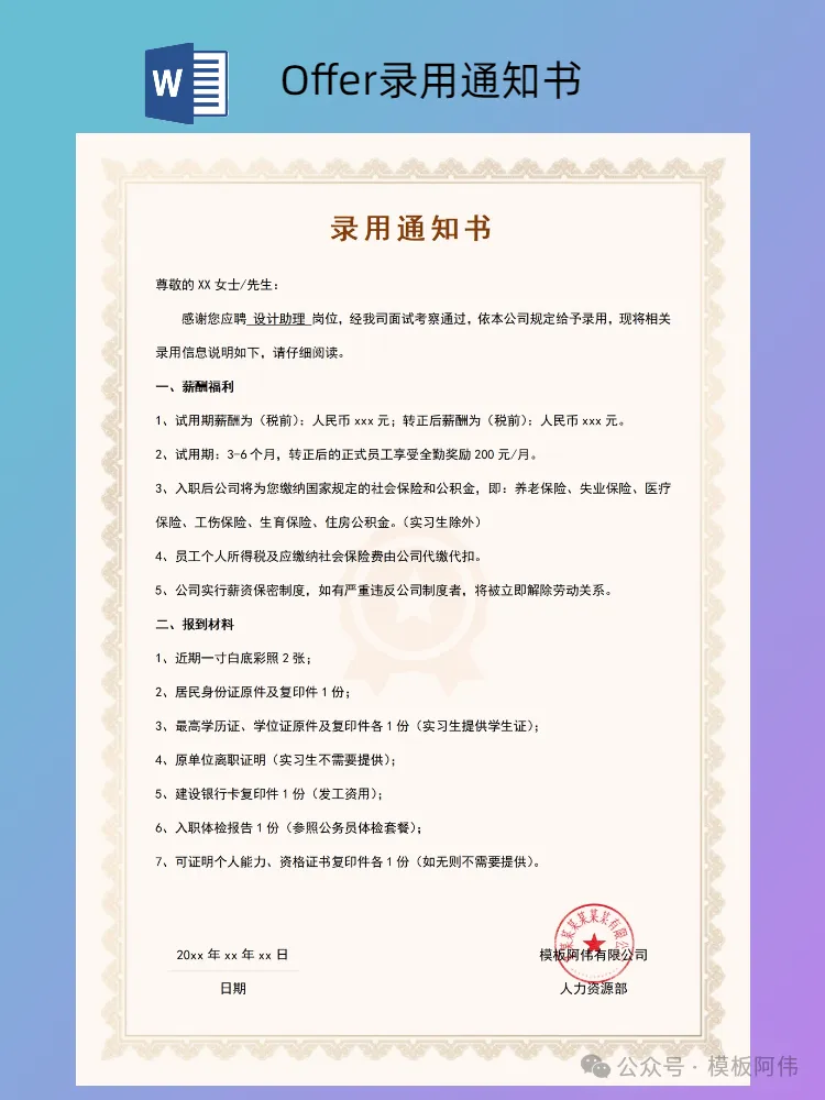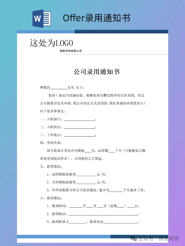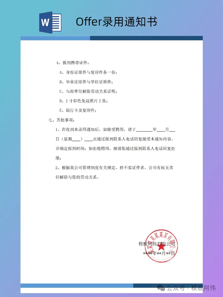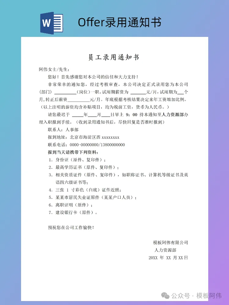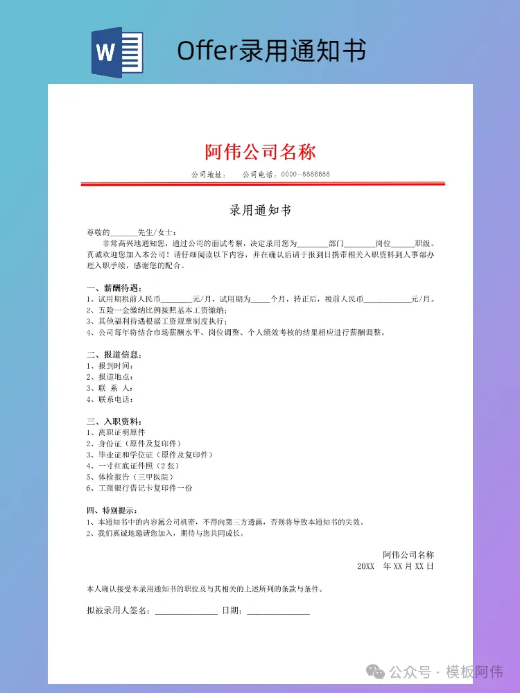 本文内容分享【Offer录用通知书模板】