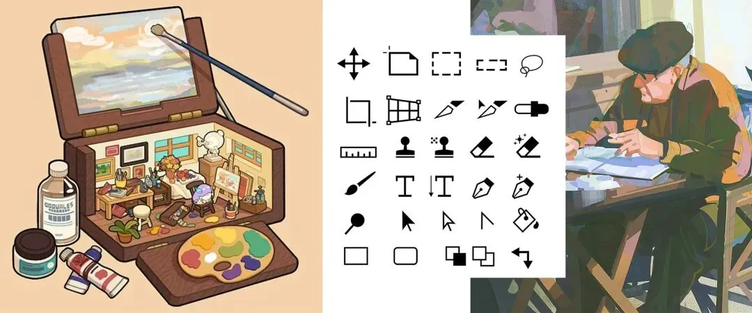 下面我们以PS这款常用软件的功能界面举例,为大家梳理出一个了解和训练绘画软件使用能力通用思路;软件是辅助工具不是绊脚石,多了解多接触自然能察觉优点。