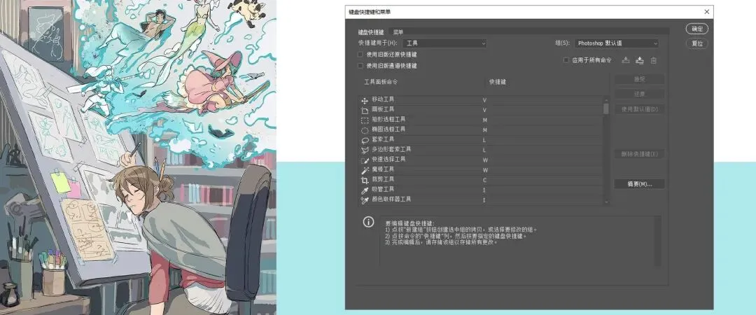▲【预设列表】很多朋友刚接触绘画软件都会下意识向第三方索取快捷键对照表;实际上在软件中就能自行查看,并且多数功能的快捷键预设是可以“自定义”的。