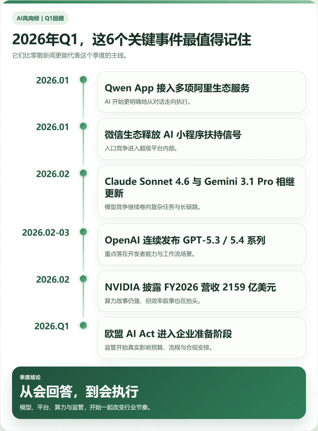 但到 Q1,越来越多动作开始指向一个更现实的问题:AI 能不能真正进入服务链、业务链和软件链。