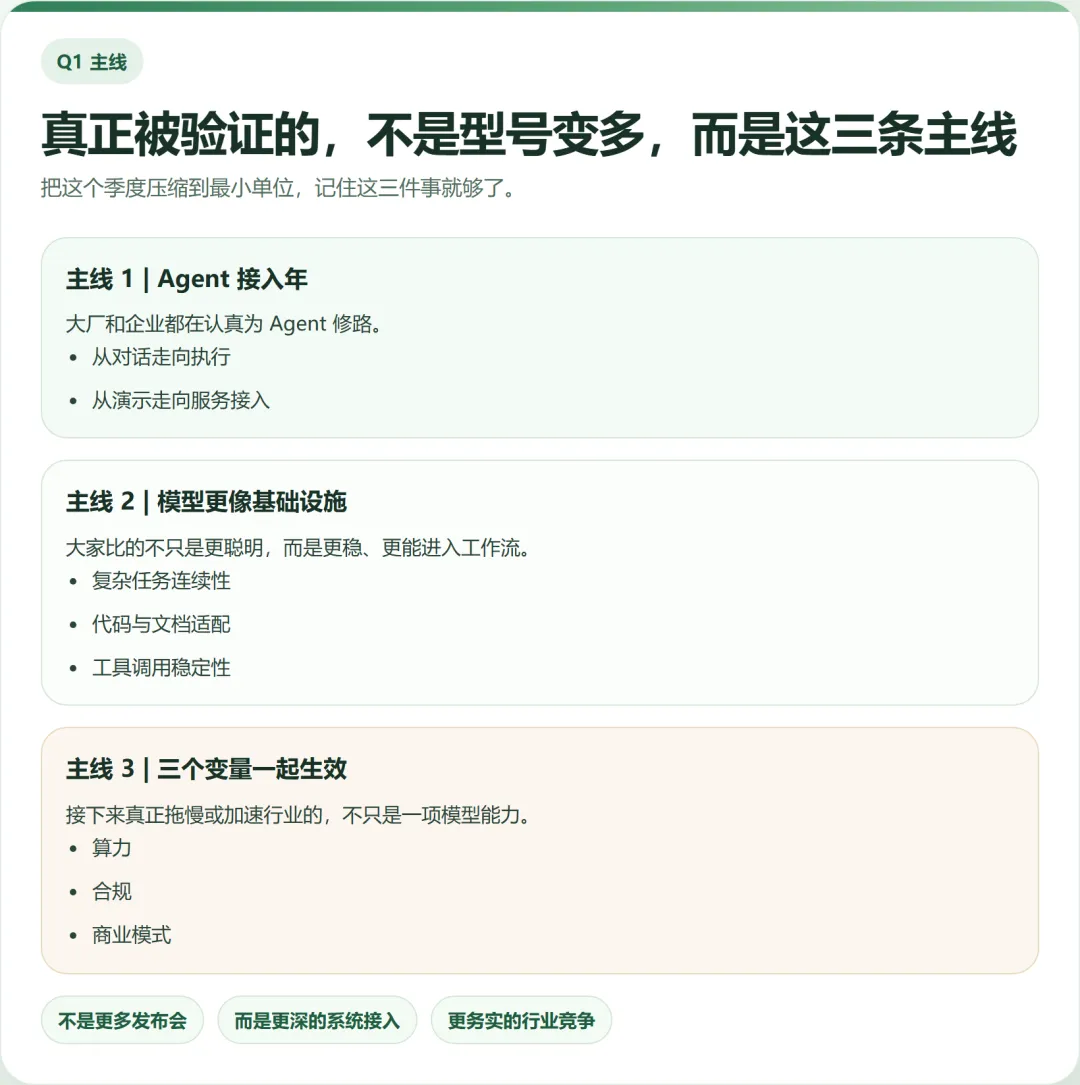 二、Q1 真正被验证的,不是“又多了几个模型名”,而是三条主线