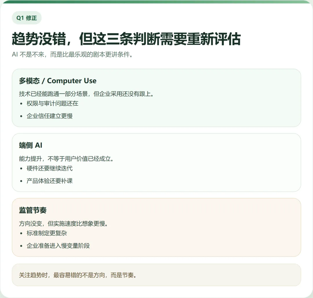 Q1 给我的修正是:端侧 AI 仍然重要,但它距离真正成为主流日常体验,还要等硬件、产品和用户价值一起补课。