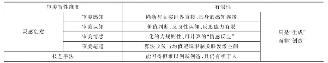表1 AI艺术审美智性的有限性