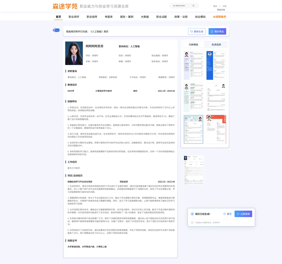 别再让平平无奇的简历埋没你的才华!森途学苑AI简历制作工具为你打造专属职场名片,轻松"简"出职场新高度!