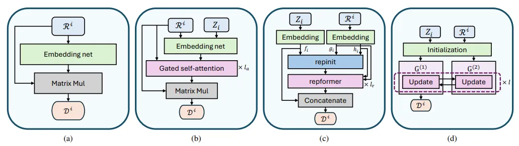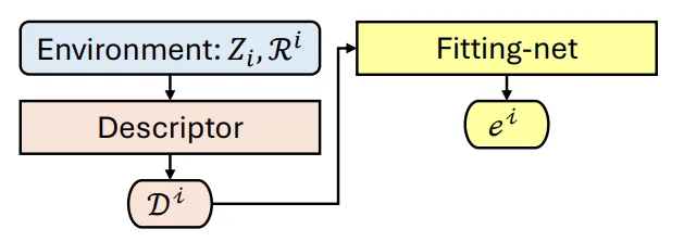 Figure 2:描绘了从原子类型、位置信息到描述符生成,再到最终能量预测的完整计算流。