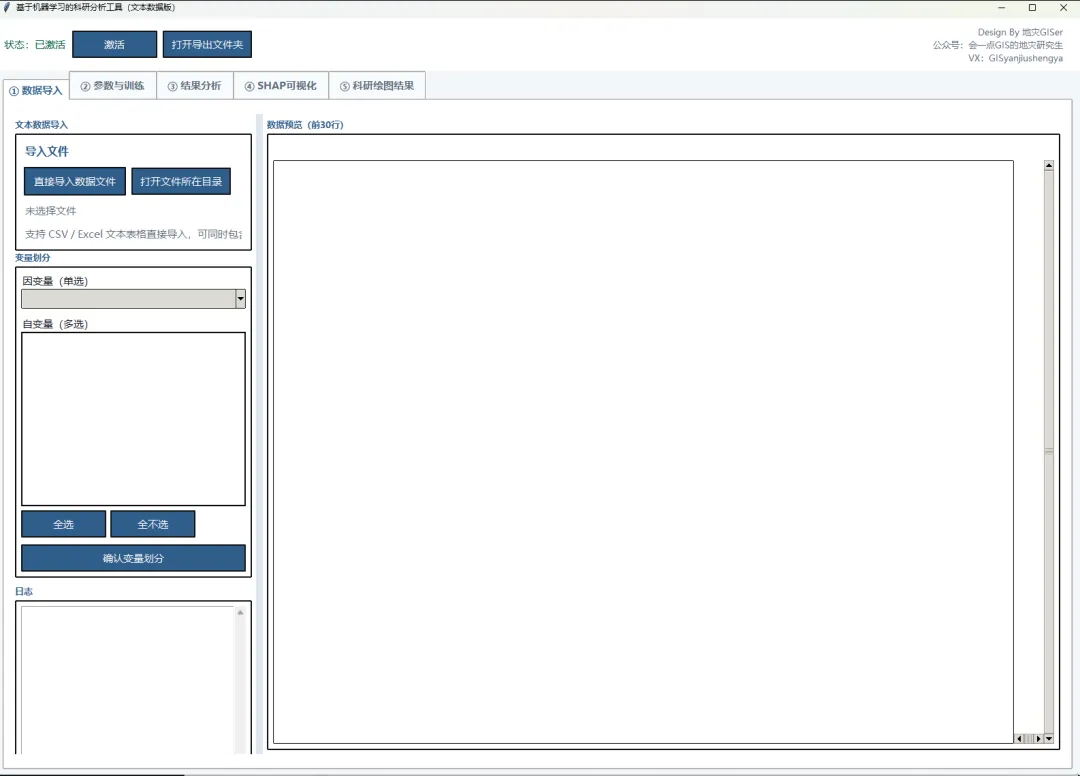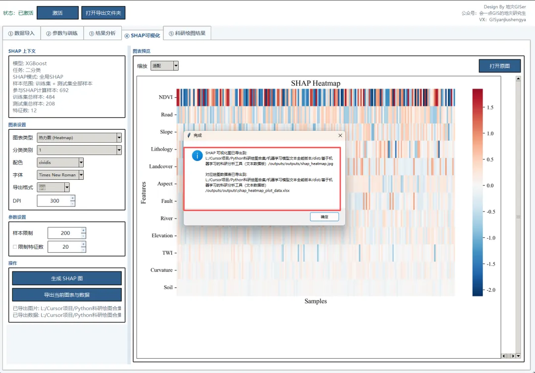 近期小编对SHAP科研分析软件进行更新,现在是6.0版本,对许多功能进行了更新,但是考虑到地理空间数据(矢量和栅格数据)输入模型训练是会很卡,有时候直接卡死,而且地理空间数据的SHAP分析应该要支持地理空间显示,因此修改了数据导入的方式,只支持文本数据的输入(.csv,.xlsx和.xls格式),同时只是针对于二分类和回归模型。后续会考虑出一个针对地理空间数据版本。主要更新在一下几个部分: