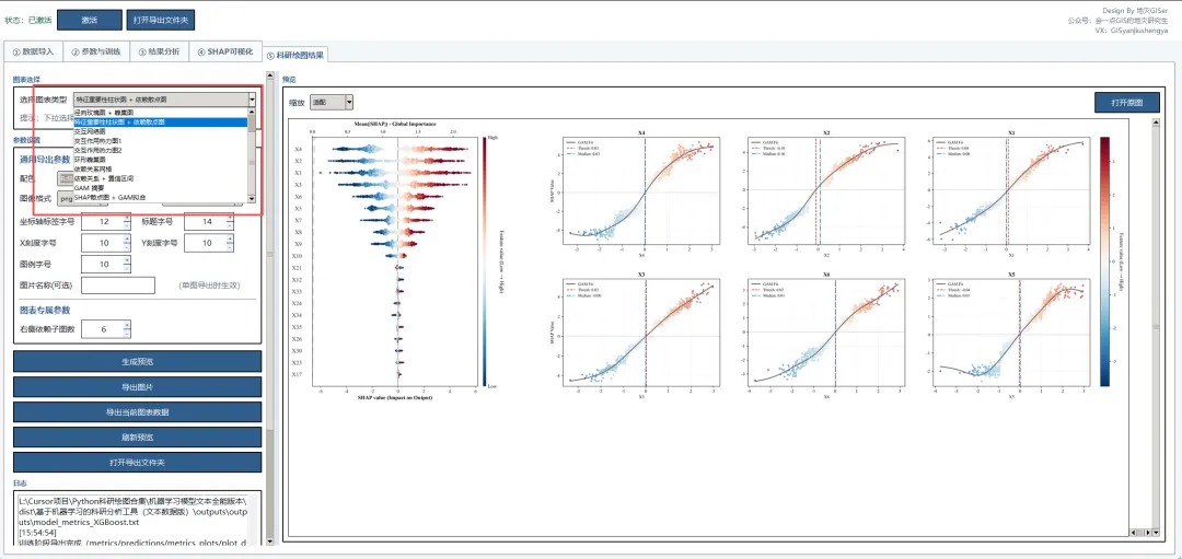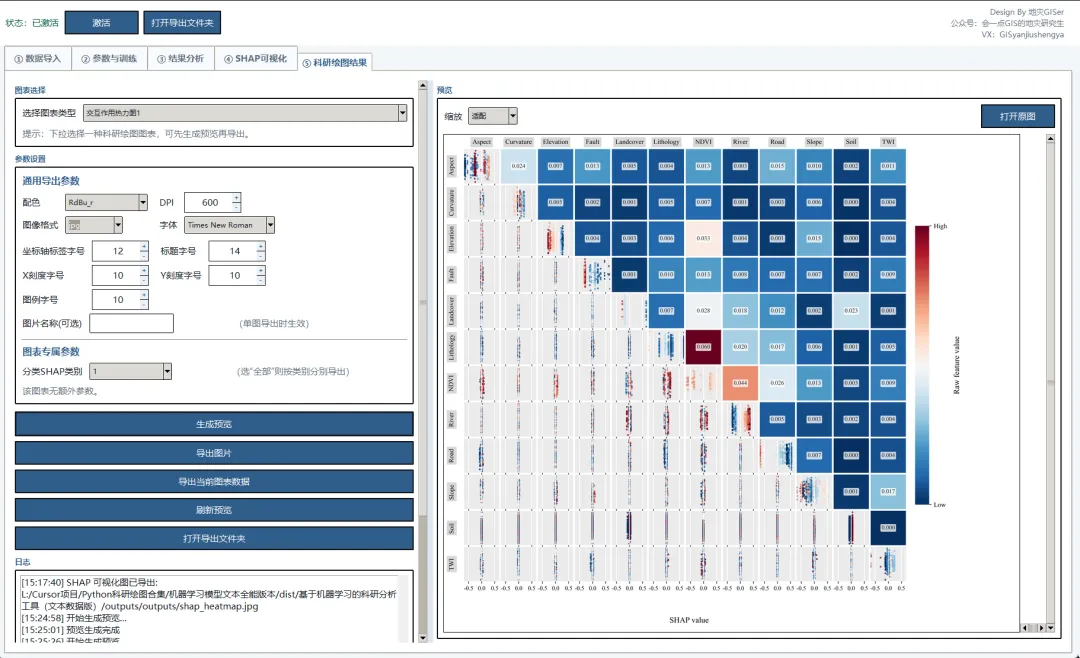 1、软件布局进行重构:增加结果分析和SHAP可视化模块。结果分析模块主要是针对分类模型可以绘制ROC曲线、PR曲线、混淆矩阵、校准曲线等,针对回归模型有残差散点图、残差分布图、Q-Q图等。SHAP可视化模块主要是针对普通的SHAP分析(蜂巢图、特征重要性柱状图、瀑布图、力图、热图、依赖图、决策图),这是和科研绘图有区别的。