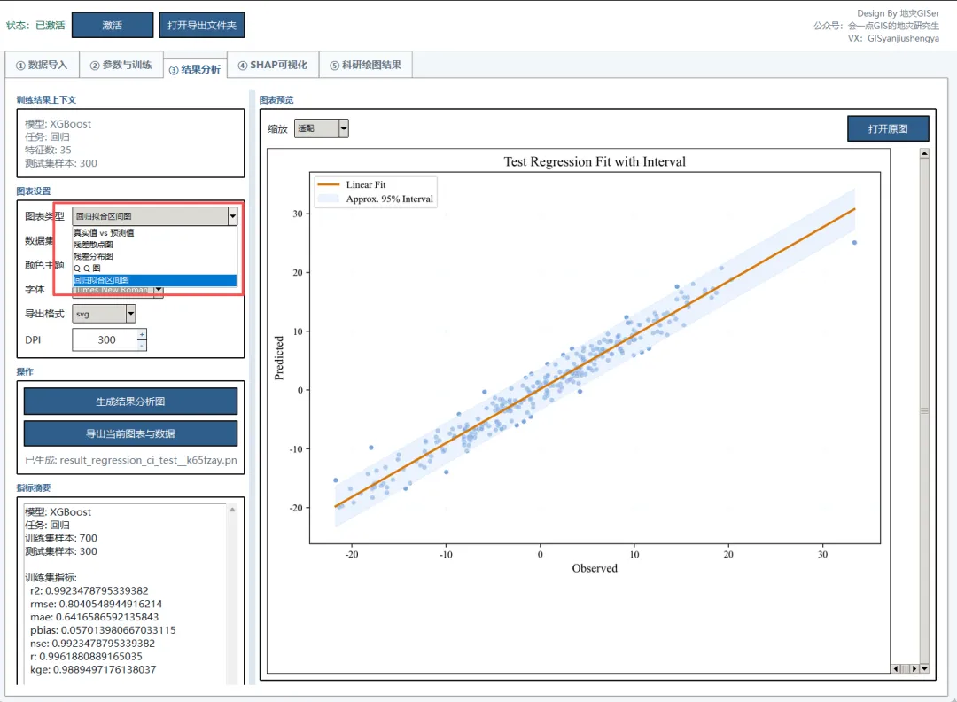 2.所有表格导出:在进行绘图以后增加了一个功能,在导出图片的同时也会导出对应图片的绘图数据,包括回归数据的真实值和预测值,R2这些指标,分类模型的ROC曲线,混淆矩阵数据以及SHAP图的数据都可以进行导出。