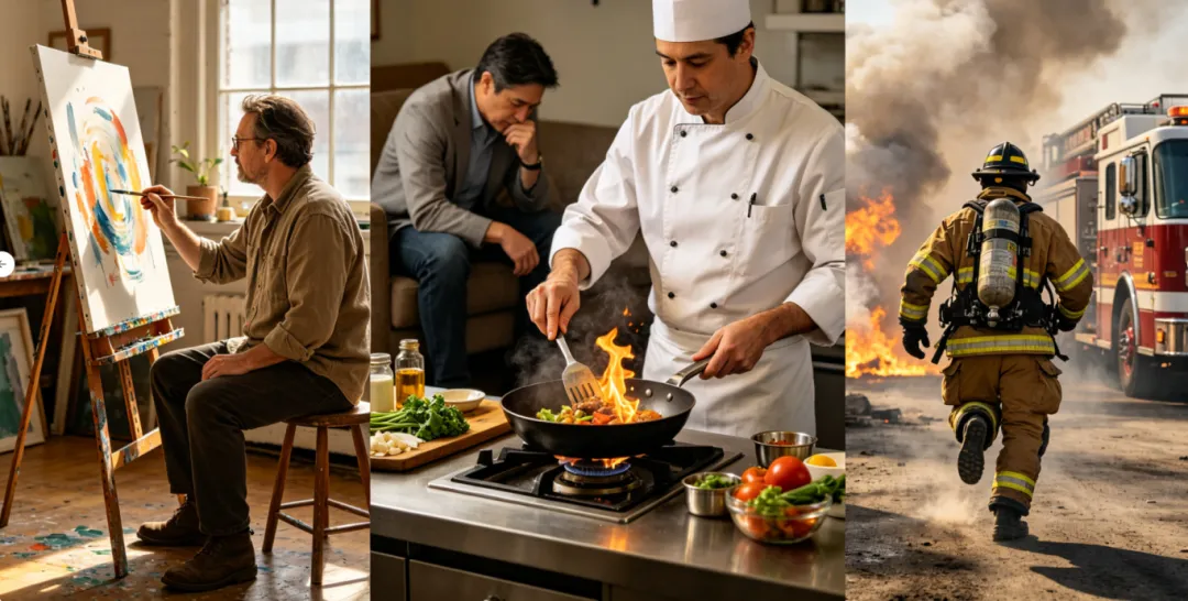 需要高度创造力,比如艺术家、作家、资深设计师;需要复杂的人际交流,比如心理医生、老师、谈判专家;需要动手实操,比如电工、厨师、美容美发师;需要应急决策的,比如警察、消防员、外科医生。